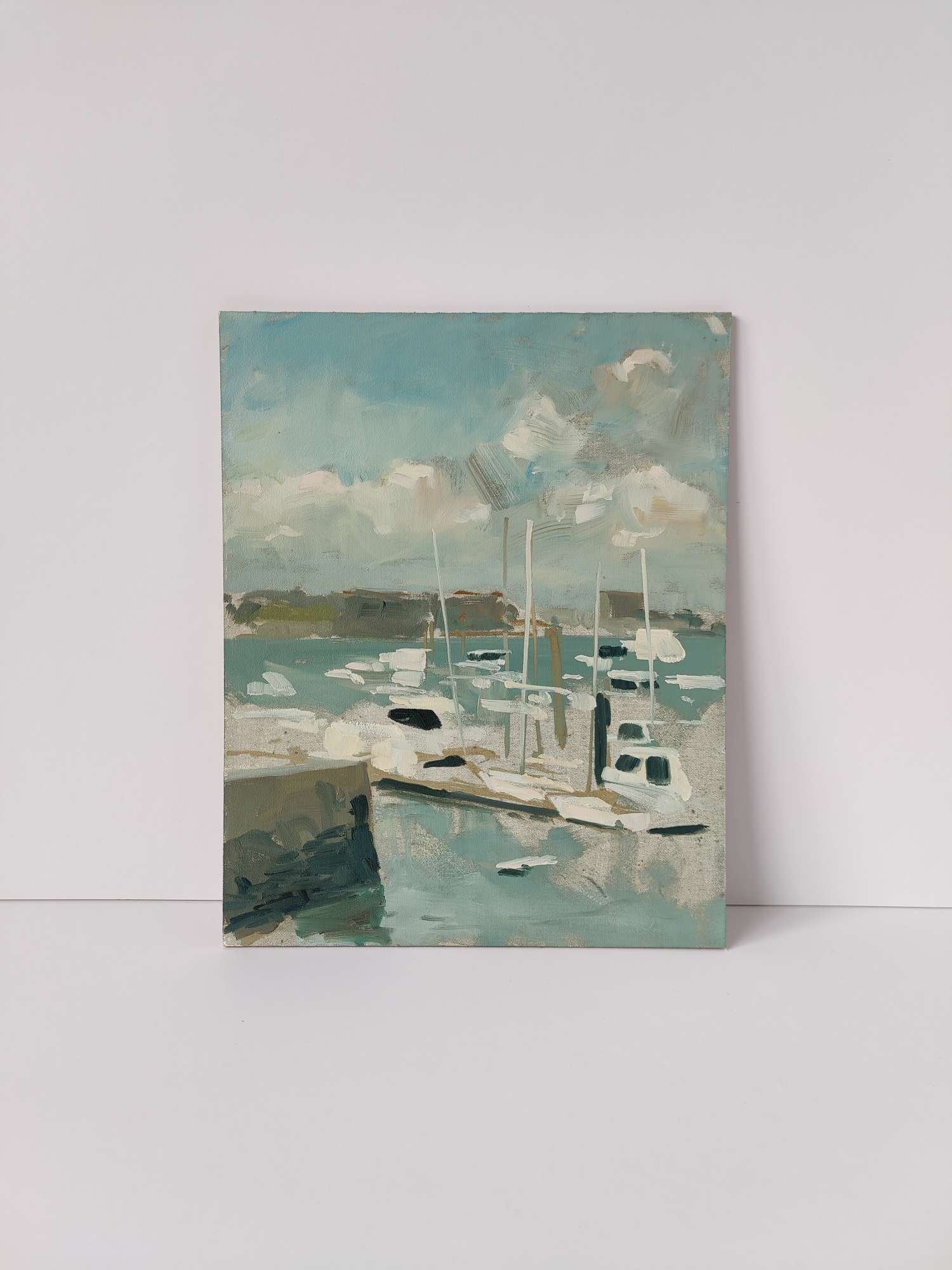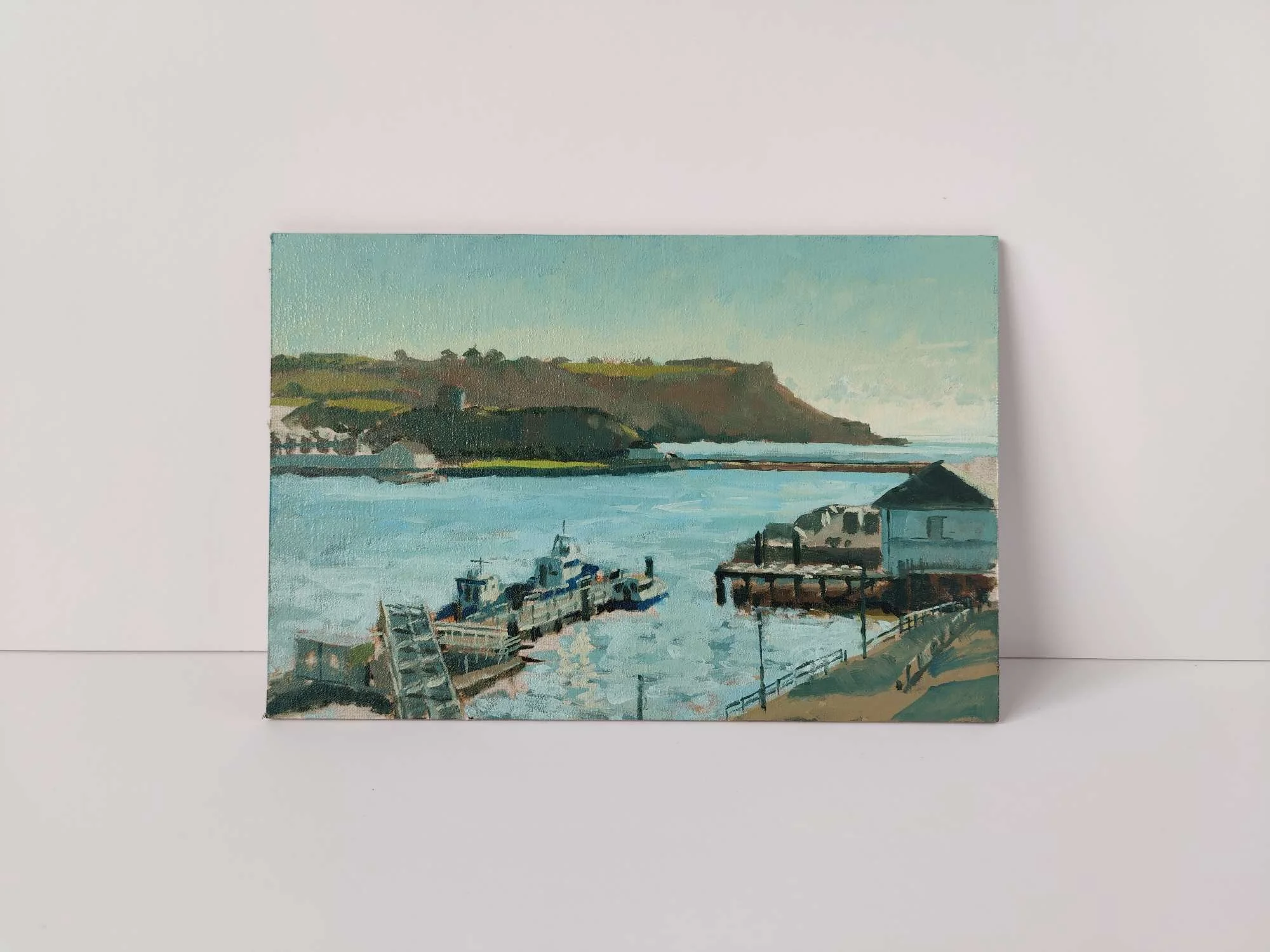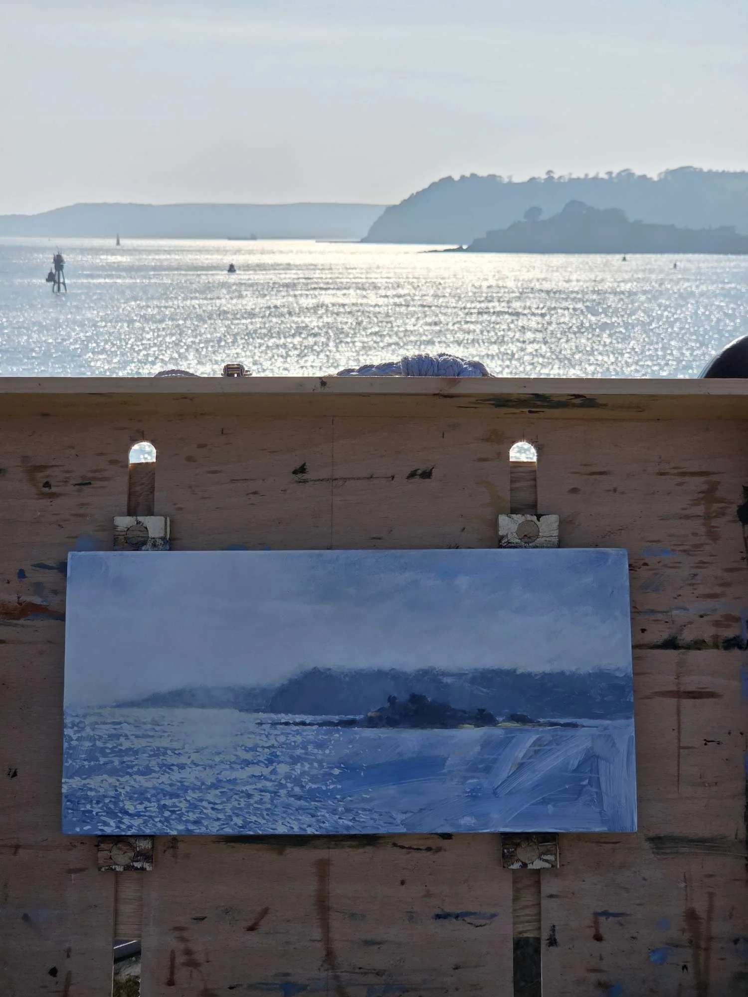 This is a view I’ve always struggled with when deciding if I should paint it - it’s borderline impossible not to turn it into a pretty postcard image. But the sun was still low enough to reflect dazzling light back across the sea, and the sun’s low angle unified all the shade across as hazy scene into areas of blocky colours. I knew I had to try something with it.